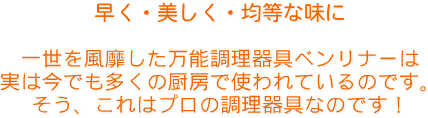 ベンリナーを使いこなす事で料理が早くなるのはもちろん、